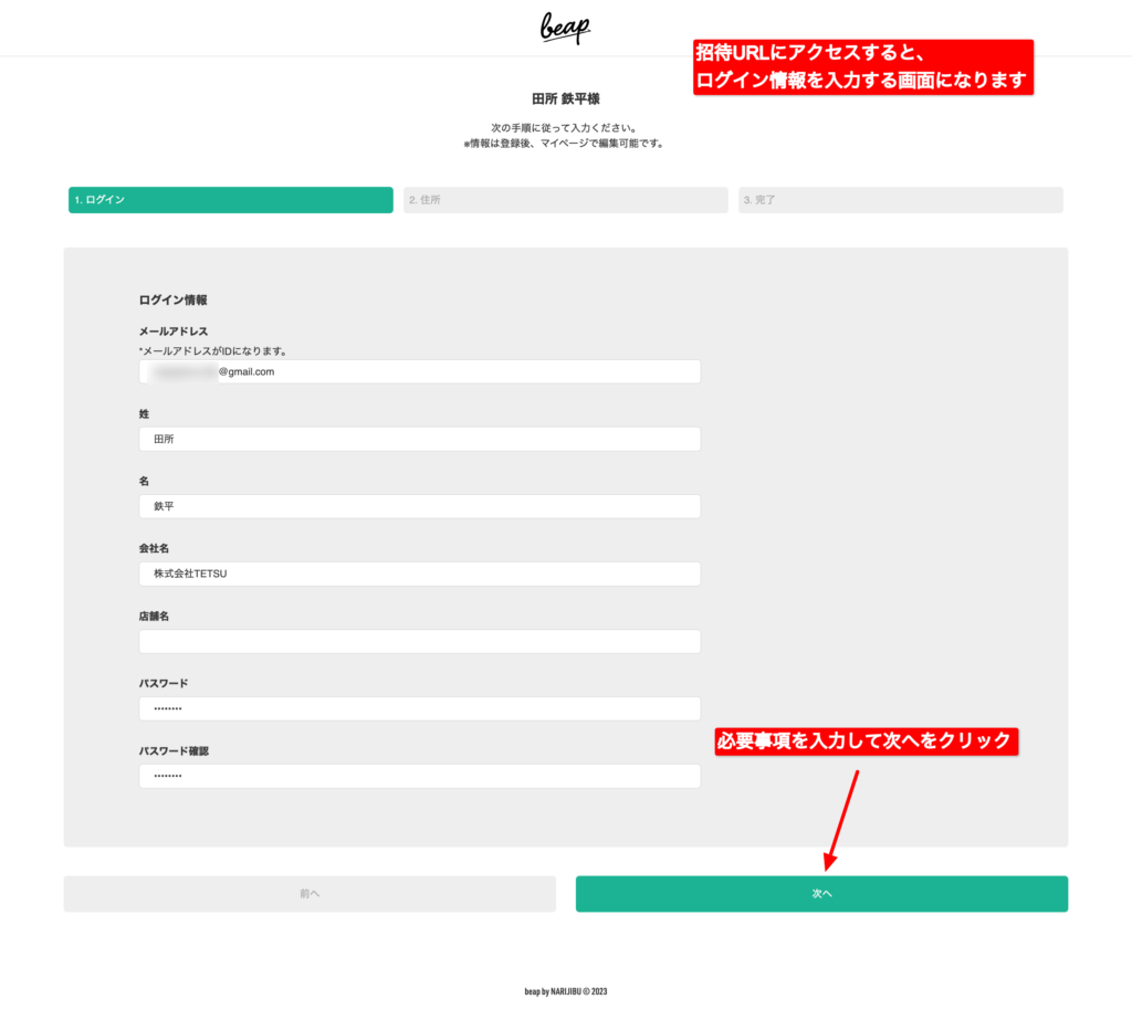 顧客は、その招待URLにアクセスします。