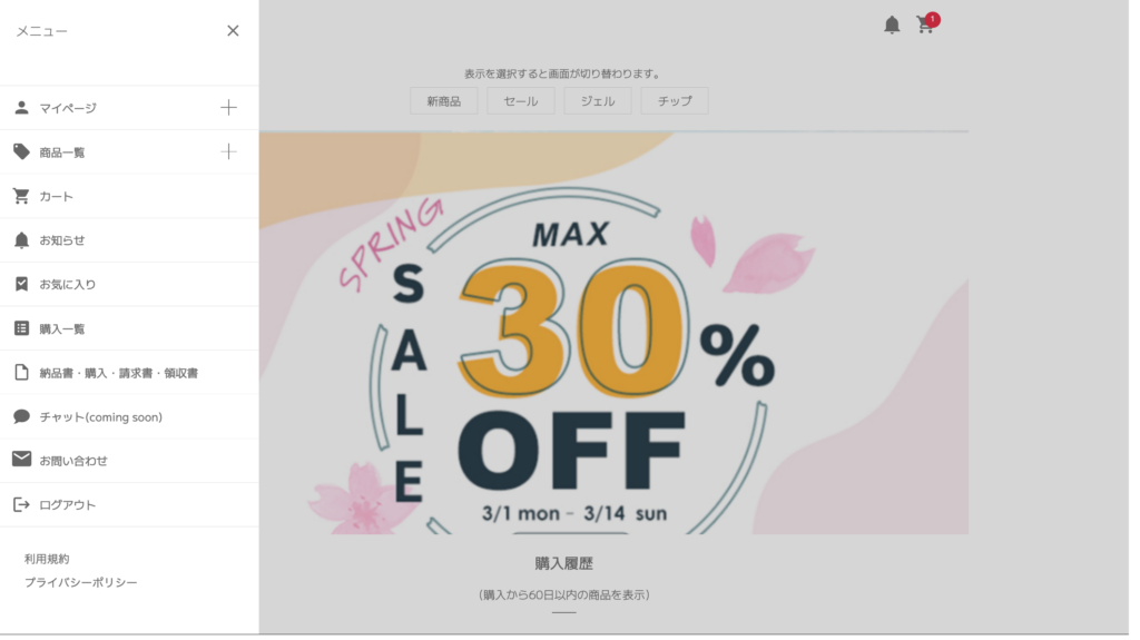 アカウントが完成して、注文が可能となります。