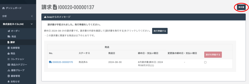 「請求書」をクリック