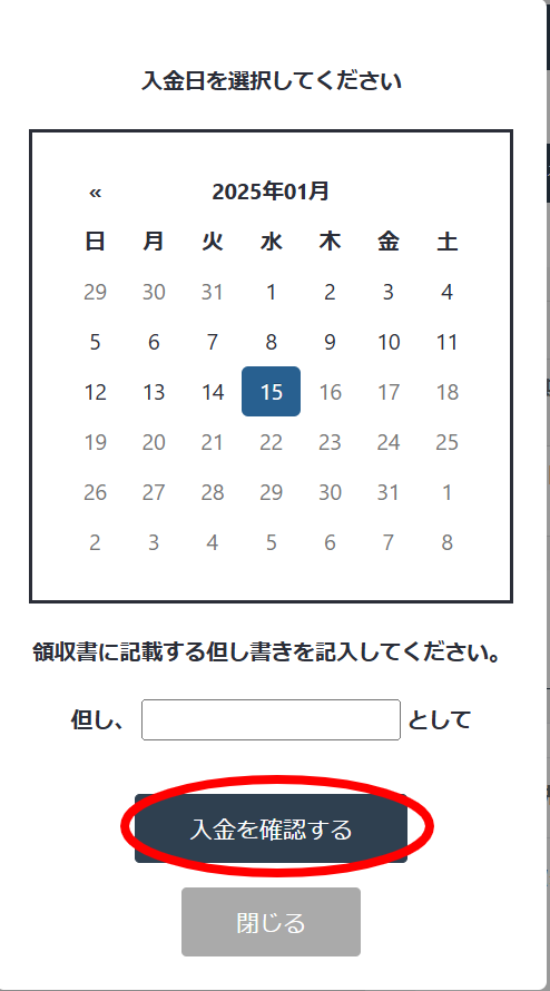 ポップアップより支払日を選び、「はい」をクリック