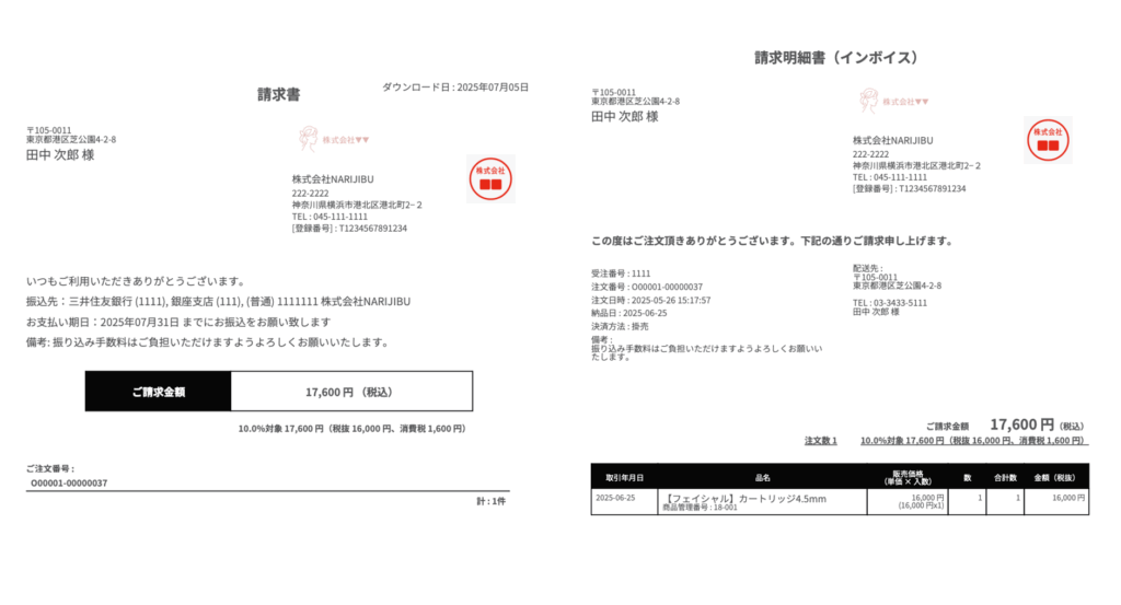 領収書が発行され、ダウンロードが可能となります。同時に顧客ページでも領収書がダウンロード可能となります。