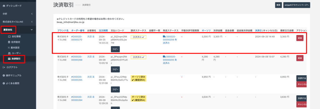 この時点で、指定されたクレジットカードが使用可能かの確認がされており、