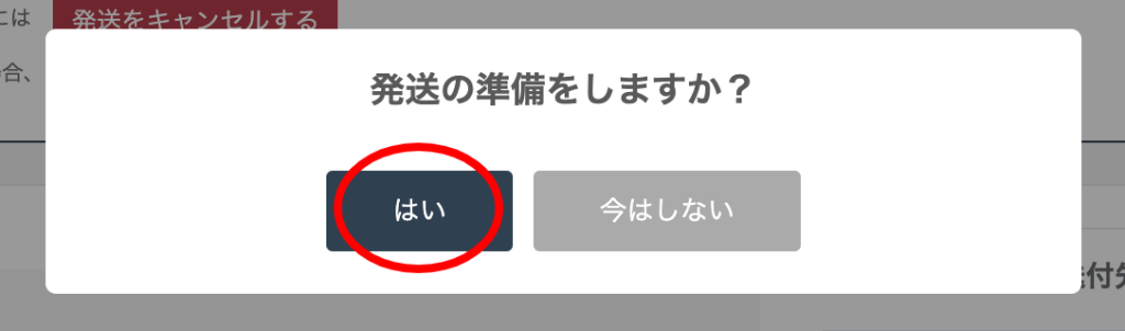 発送担当が別にいる場合、発送担当にメールでお知らせする場合は「はい」をクリック