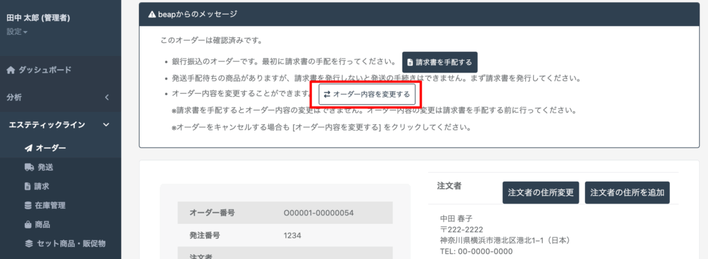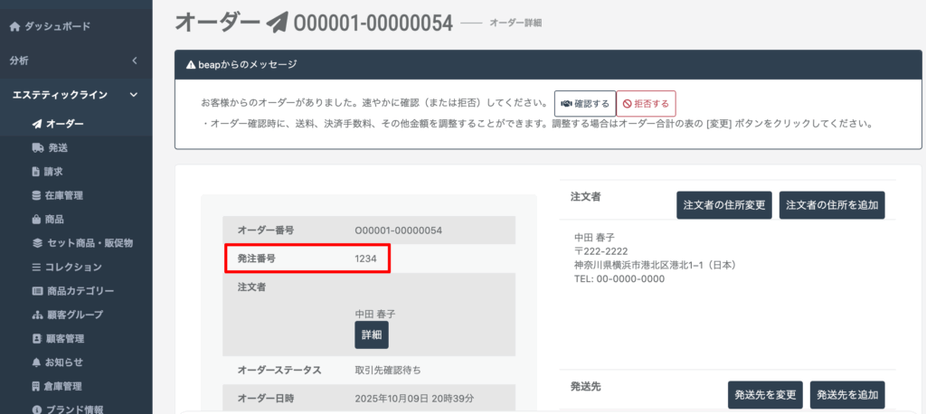 発注番号は、管理側でも変更が可能です。